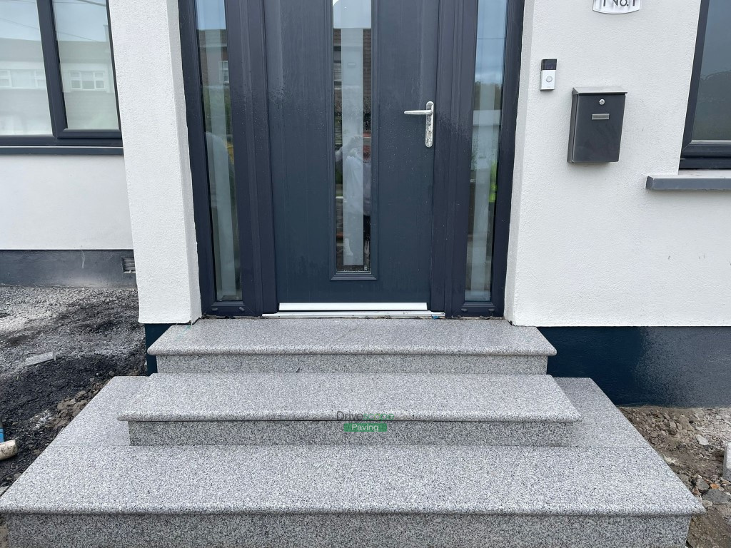 We have completed a new driveway in Templeogue, Dublin. The driveway has an asphalt top finish with silver granite blocks for borderline and bull-nosed silver granite doorsteps. We also installed two recessed manhole covers.