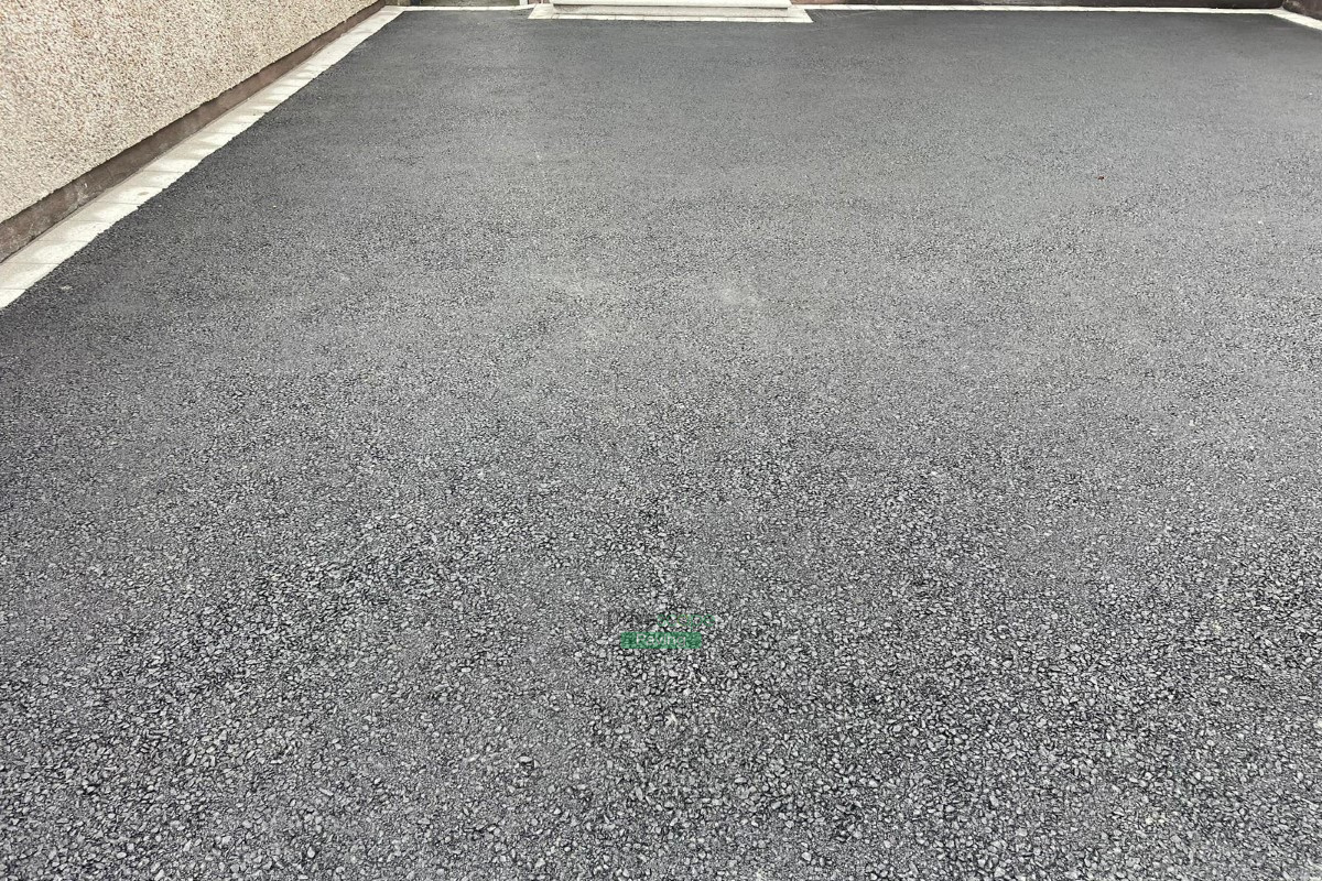 This new asphalt driveway is installed in Templeogue, Dublin, with a granite Corrib border and bullnose granite step.