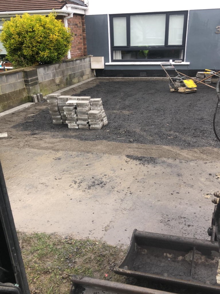 First we took out the original surface and removed it from site. Then we laid a new foundation of hardcore crushed stone.