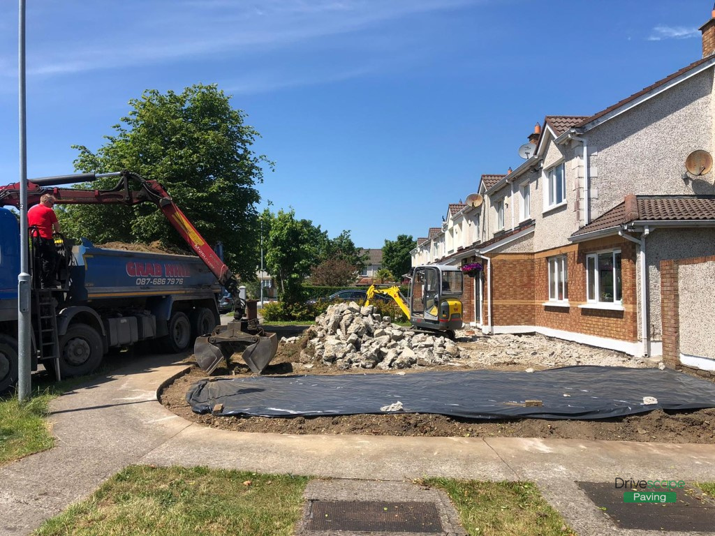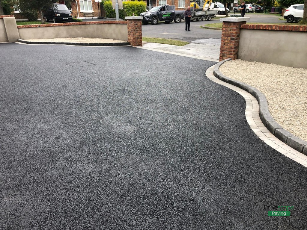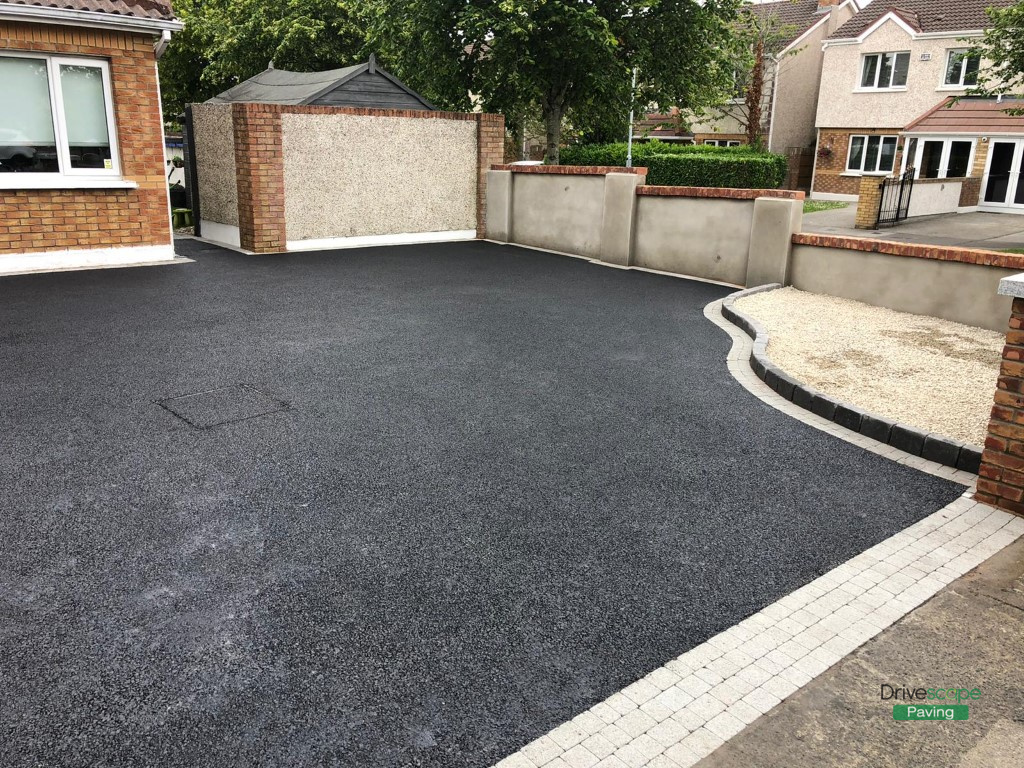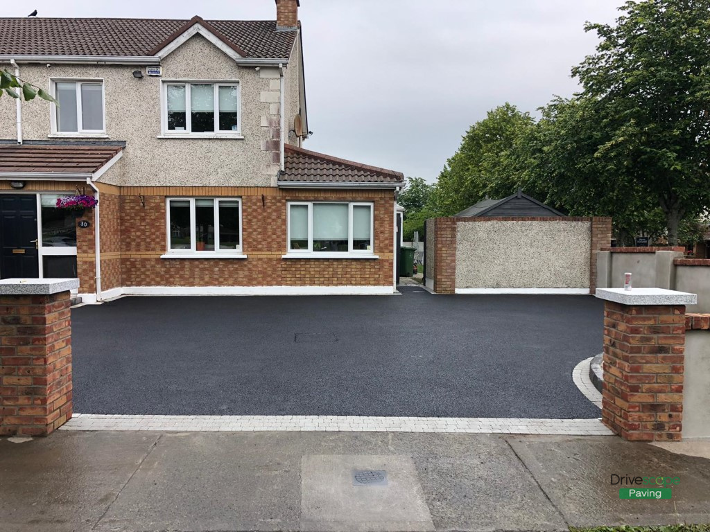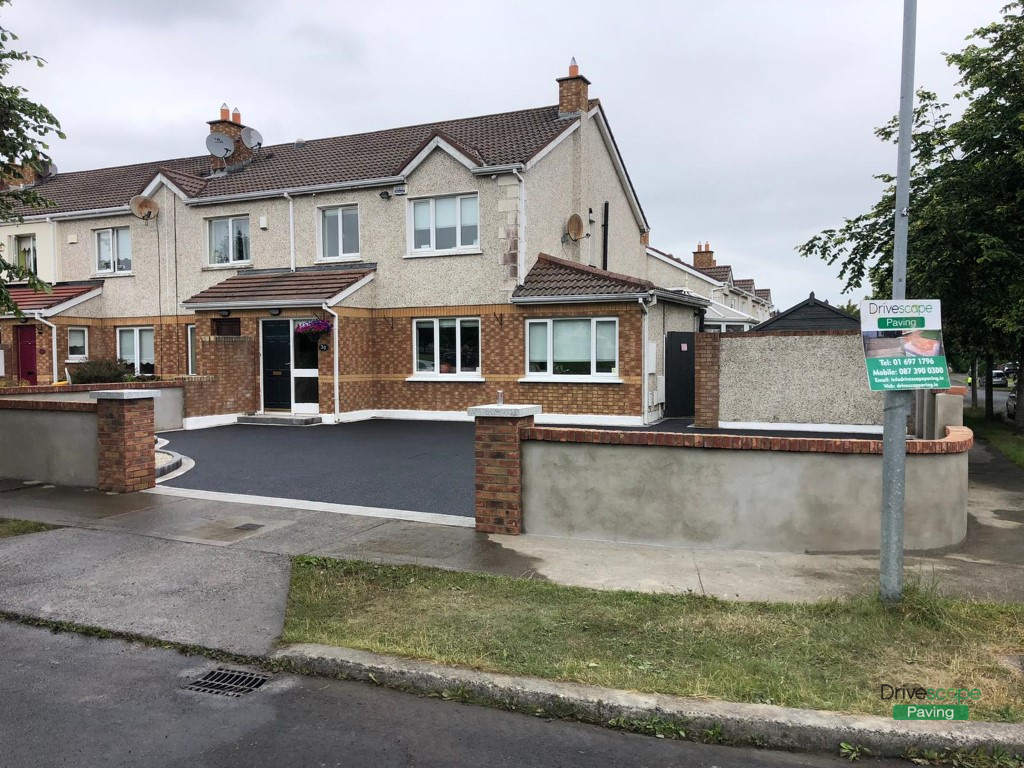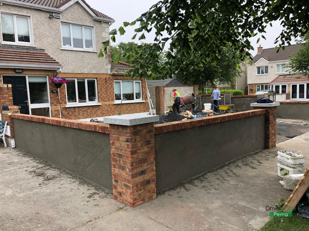 Asphalt Driveway with Retaining Walls and Brick Pillars in Clonee