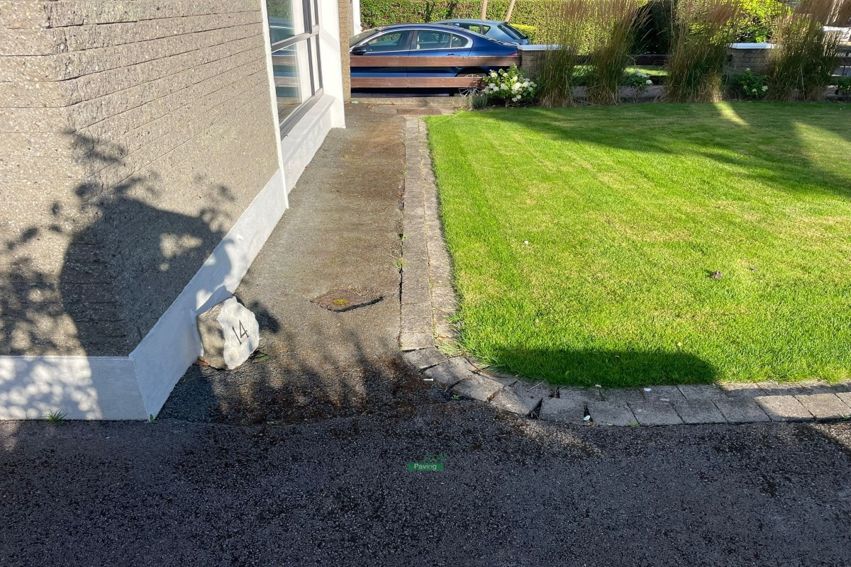 Here are some before and after photos of an asphalt driveway transformation featuring a recessed manhole cover, a new drainage system and a silver granite Corrib borderline.