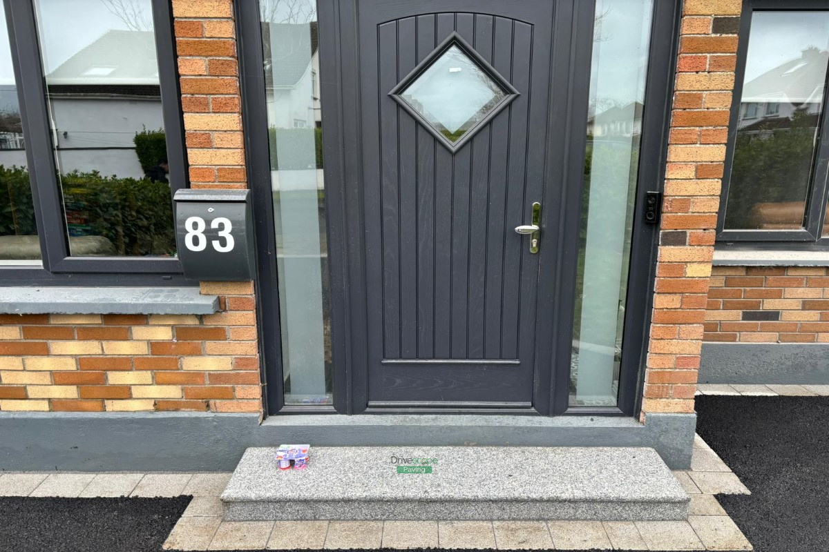This is a new asphalt driveway with a silver granite Corrib border and bull-nose granite step in Portmarnock, Dublin.