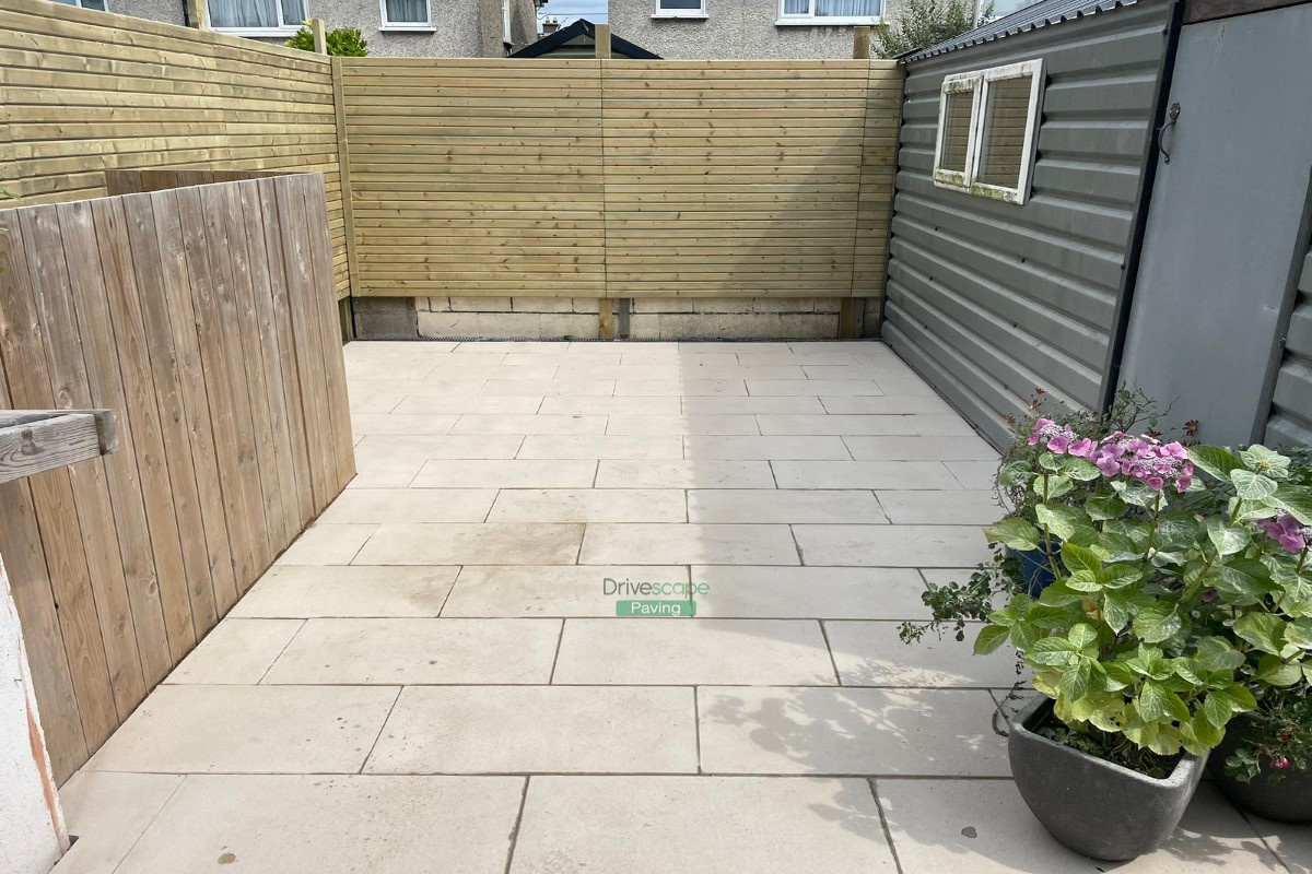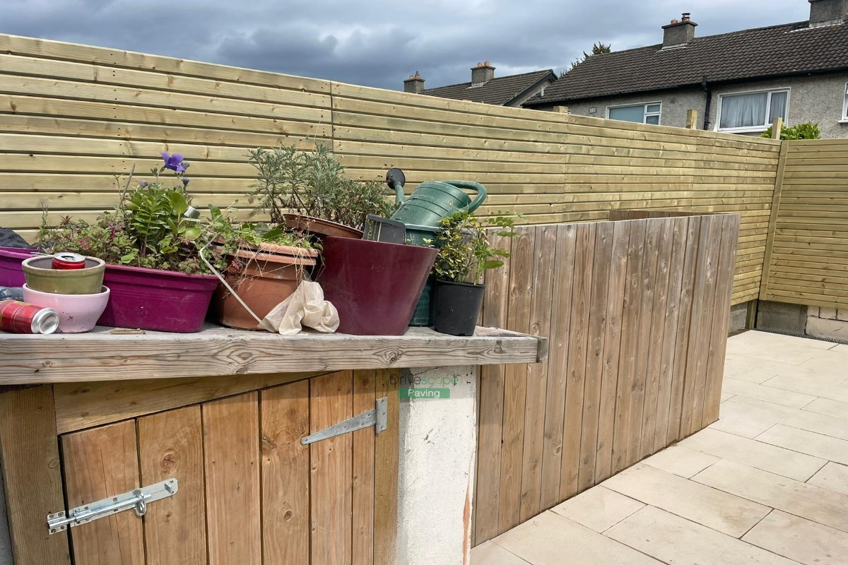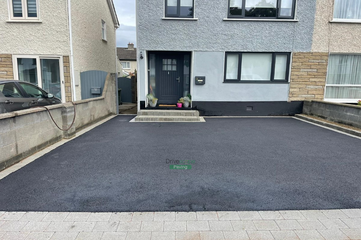 Our team at Drivescape Paving installed a new asphalt driveway with silver granite kerbing and steps in the front and a new porcelain tiled patio with steps and new fencing at the back. This project took place in Templeogue, Dublin.