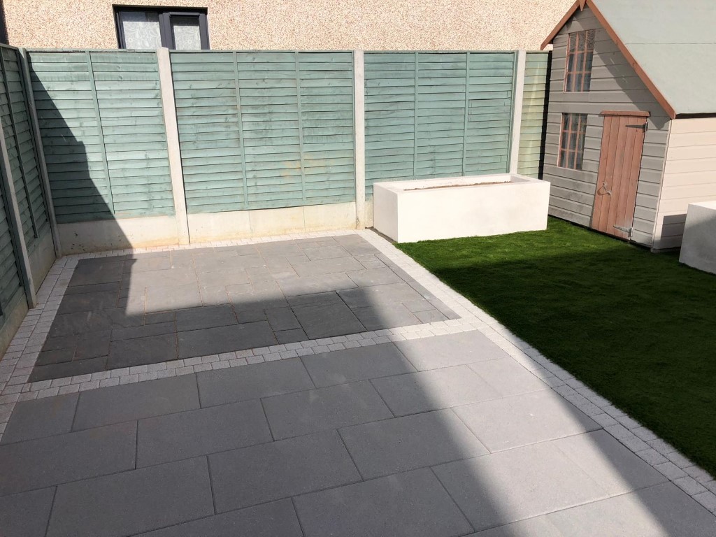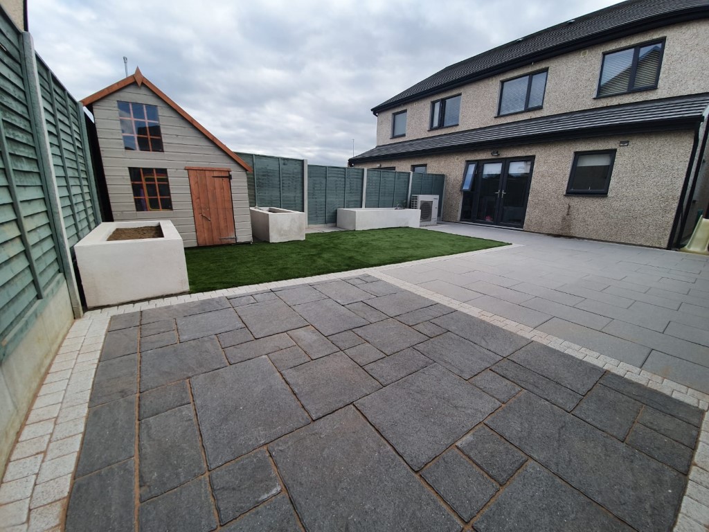Belvedere Granite Patio with Raised Flowerbeds in Clonsilla, Dublin
