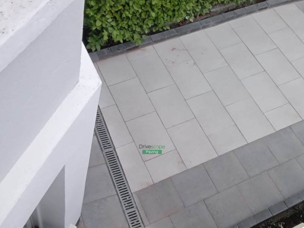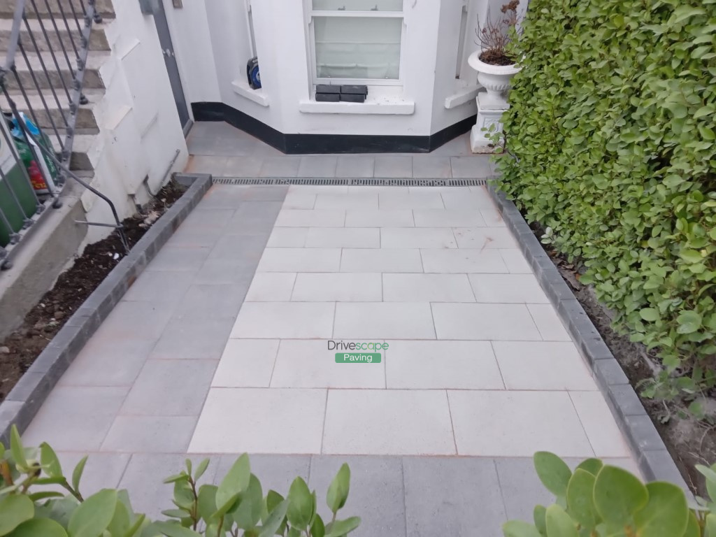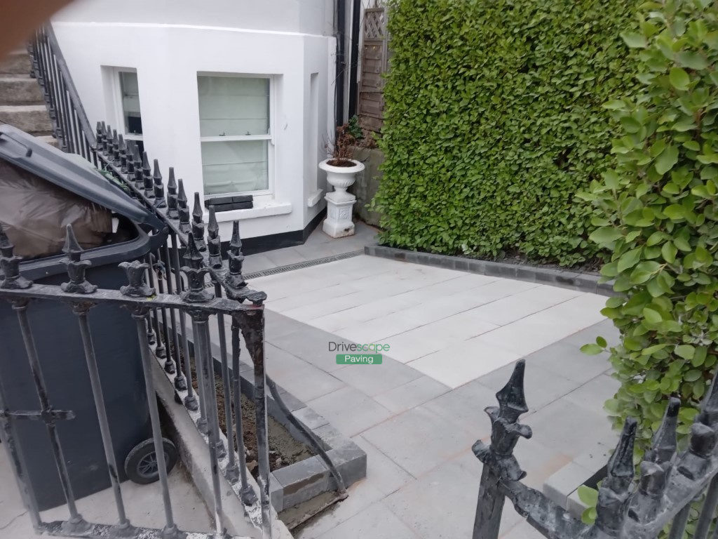 Our team has installed a new front patio in Marino, Dublin, using 400 x 400 mm black granite slabs with 600 x 400 mm silver granite slabs, Lismore kerb blocks and new ACO drain channels.