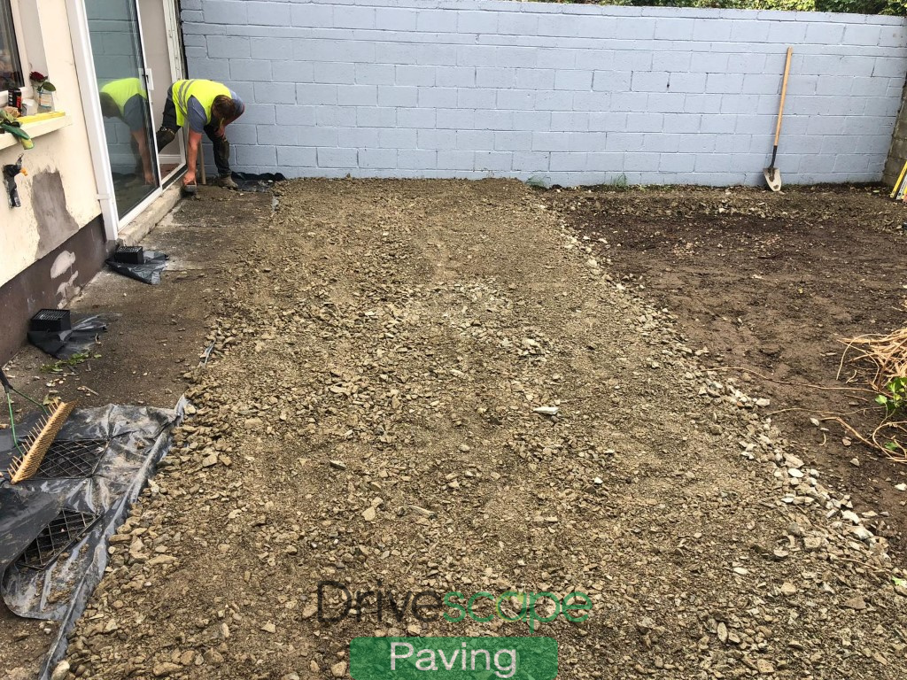 Here are some before, during and after pictures of patio project, supplied and carried out by Drivescape Paving in Lucan, Dublin.