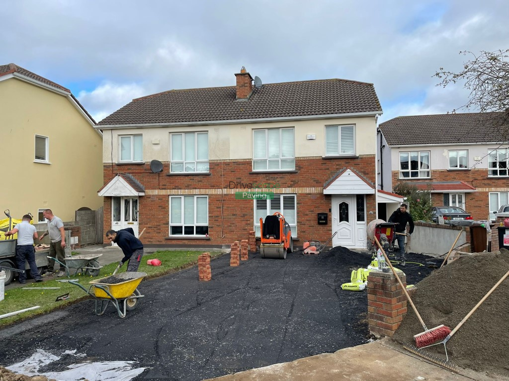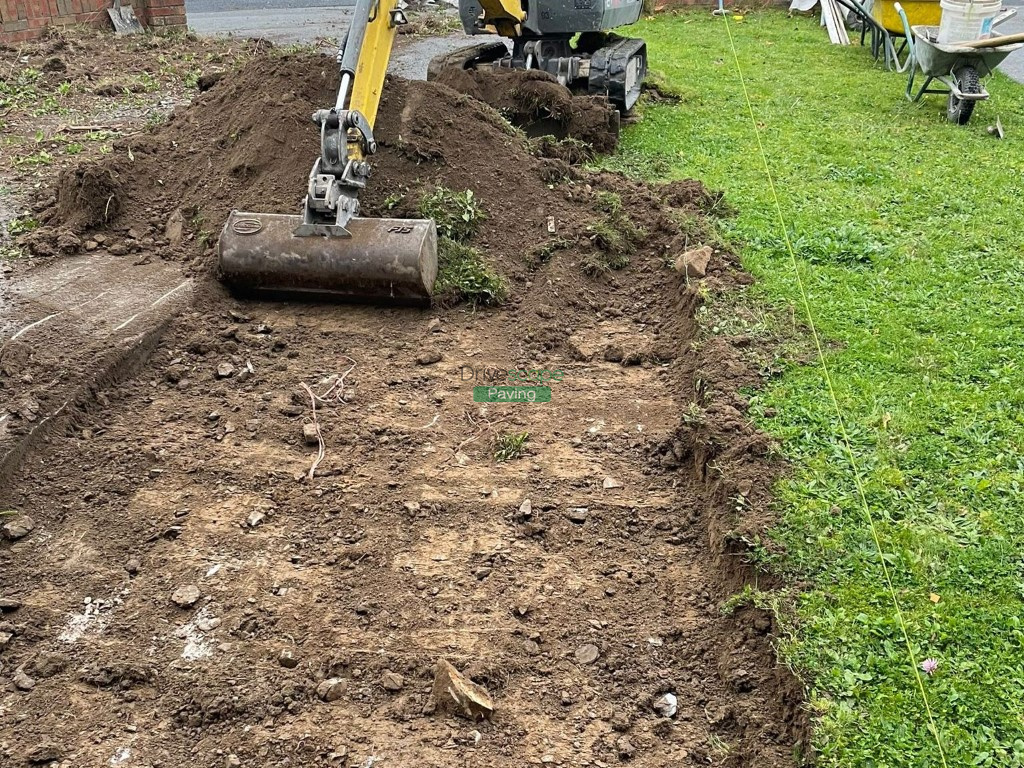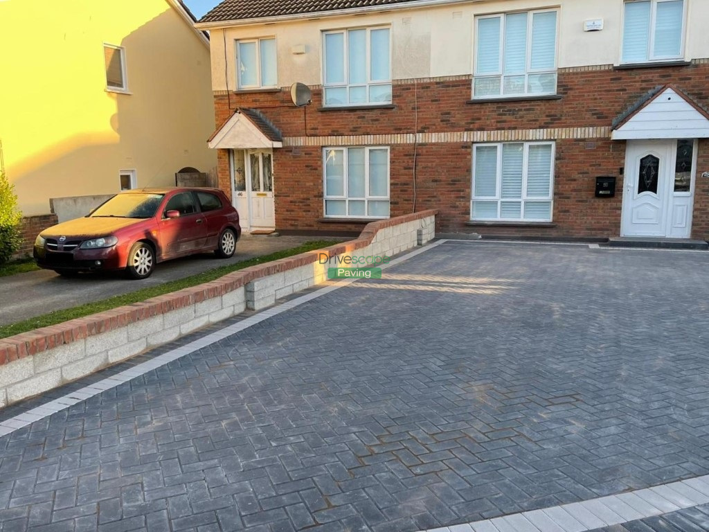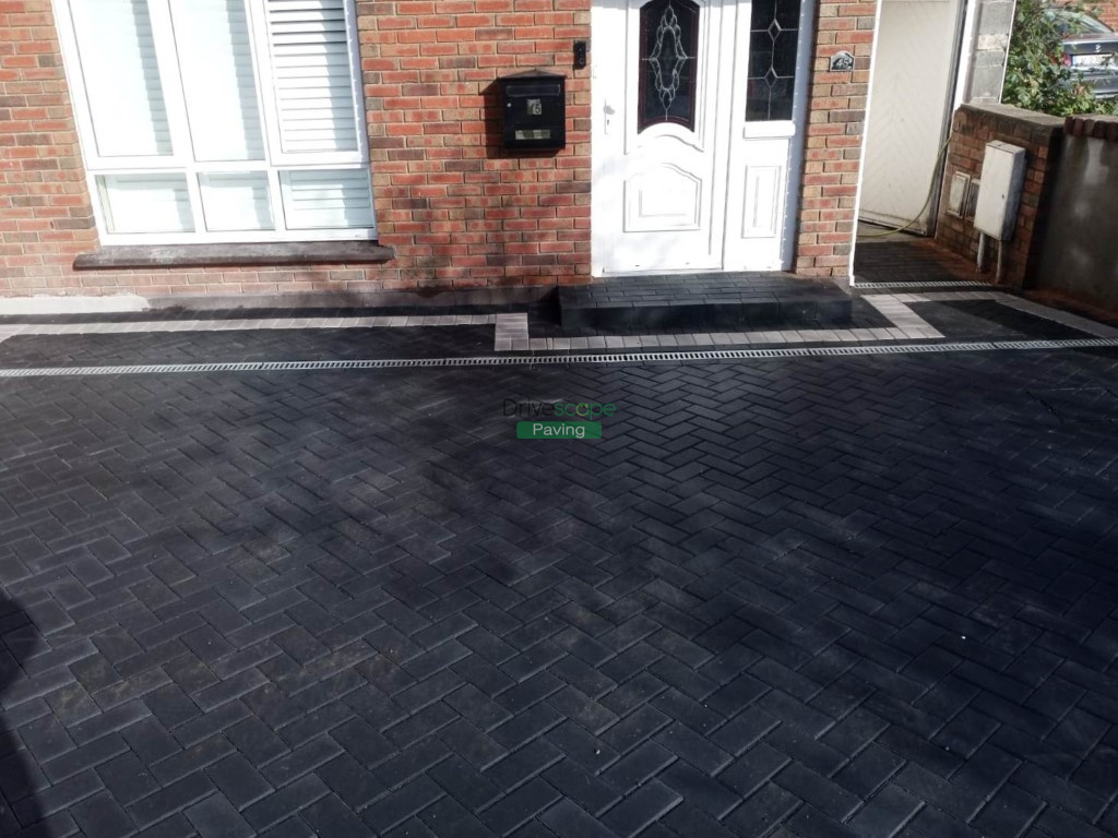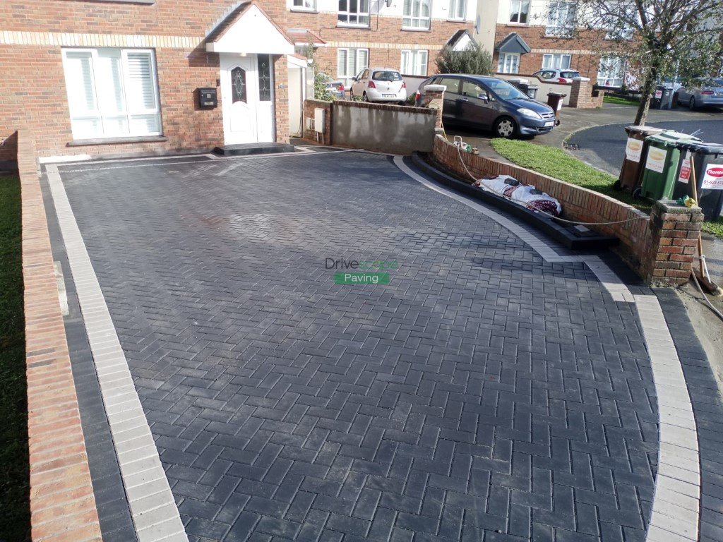 We have installed new driveway with charcoal block paving laid in a 45° pattern with natural grey borderline. We also built a new retaining wall, separating two properties, with red brick copings on top.
