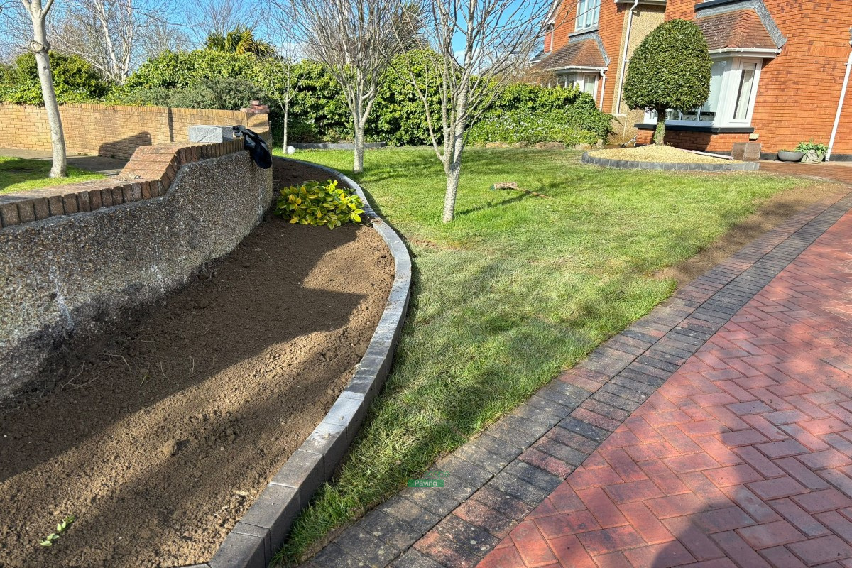 Our team completed this driveway extension in Donabate, Co. Dublin, with brindle block paving, new kerbstones, topsoil, and golden gravel.