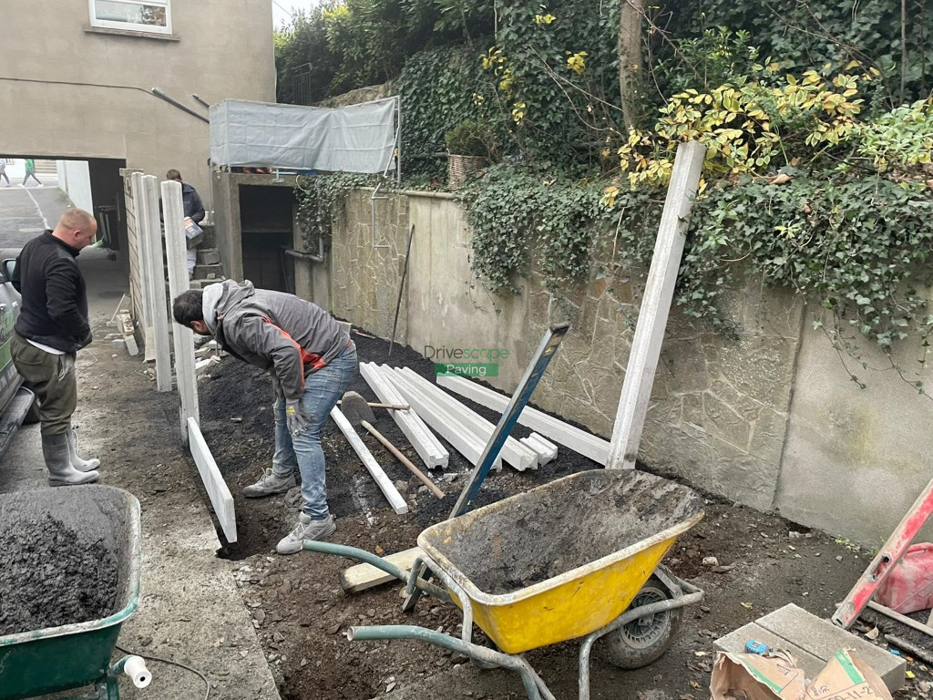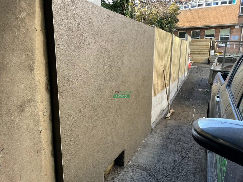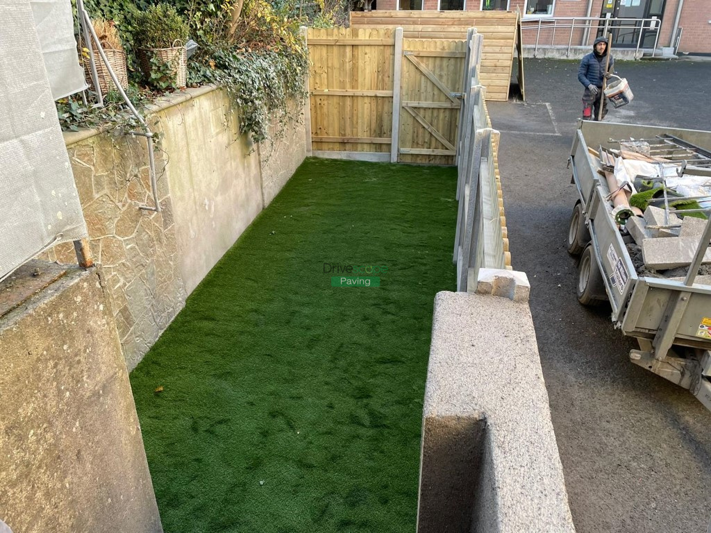 Our team has transformed an unused parking space into a children’s play area. We built a new retaining wall with a plastered finish, new fencing with concrete posts and gate and installed drainage throughout. We also laid new 40 mm artificial grass in the designated area.