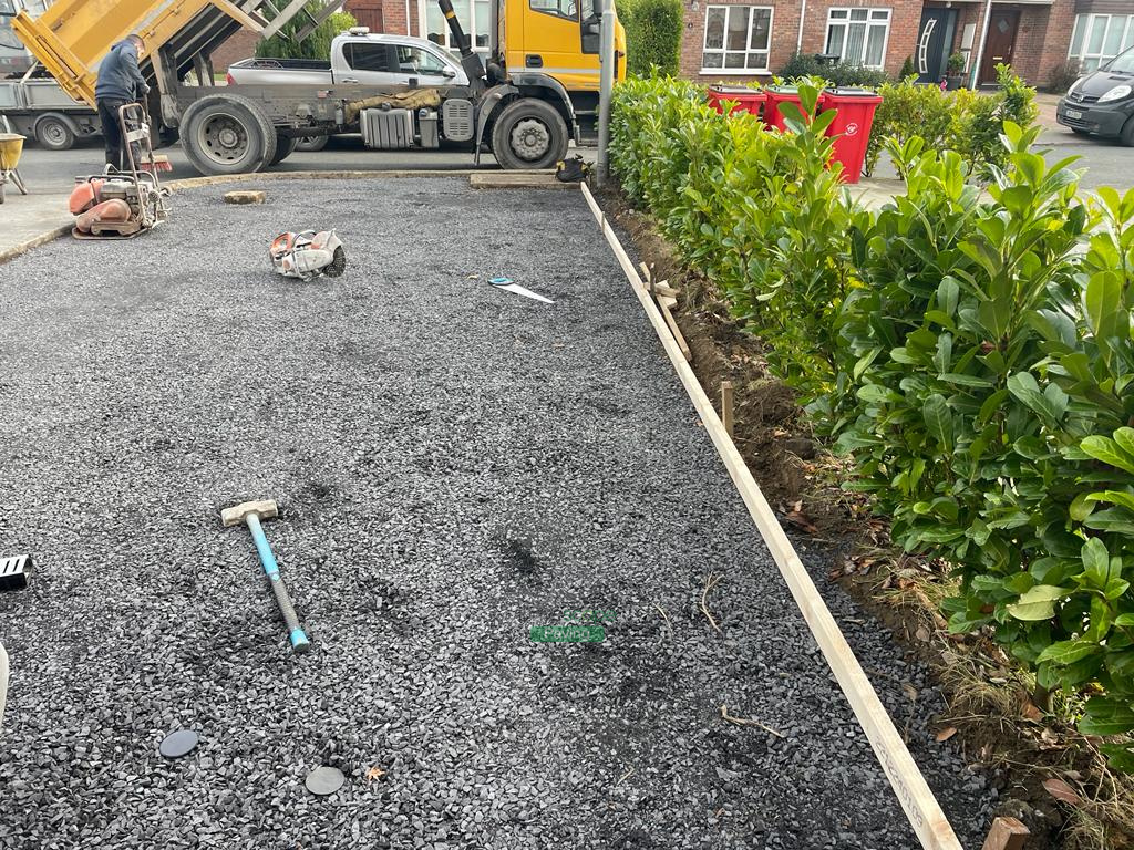 This driveway extension was completed by Drivescape Paving in Lucan, Co. Dublin. We excavated the garden area, set in new bull-nose edges and ACO channels. We finished the extension with a 20-10 concrete mix and gave it a brushed finish.