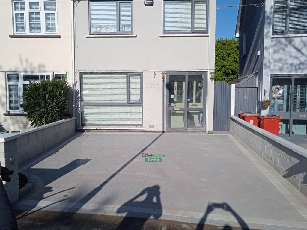 This is a new driveway with black granite Corrib paving and silver granite borderlines that Drivescape Paving supplied and installed in Baldoyle, Dublin.