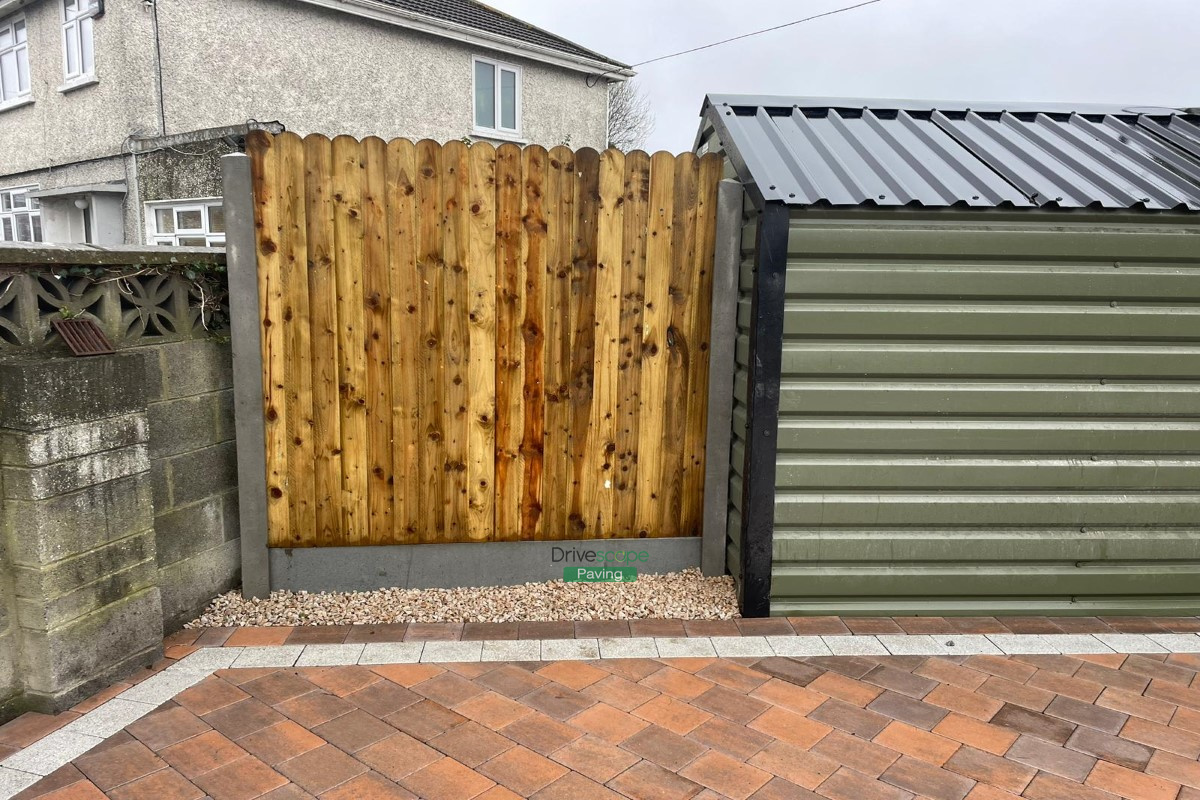 This project features Curragh gold Corrib paving with silver granite borders, natural granite doorstep and new wooden fencing. In preparation for this job, we moved the right-hand side pillar to widen the drive-in area and installed new drainage and a gravel patch.