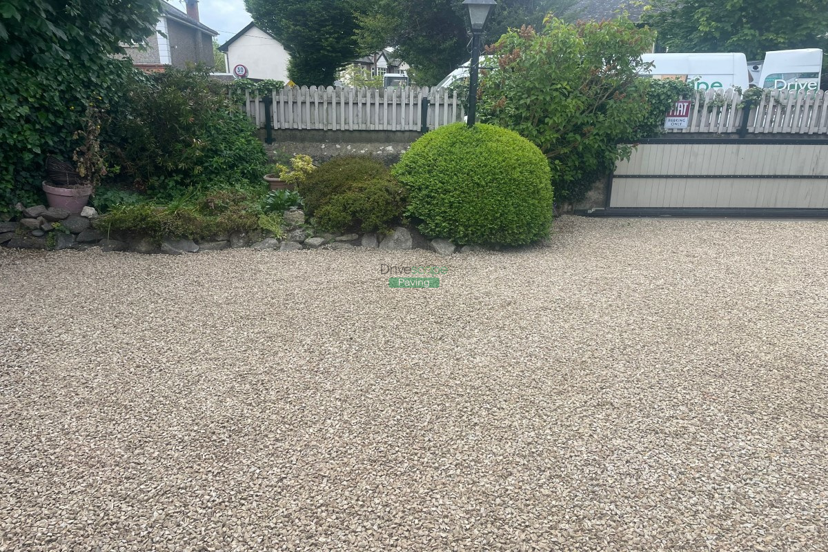 In this project, Drivescape Paving replaced an existing 20 mm gravelled driveway in Churchtown, Dublin with 14 mm Ballylusk golden gravel aggregate.