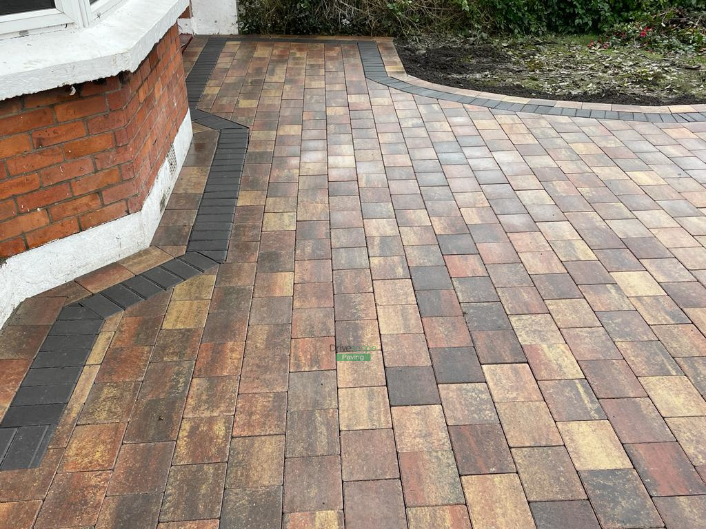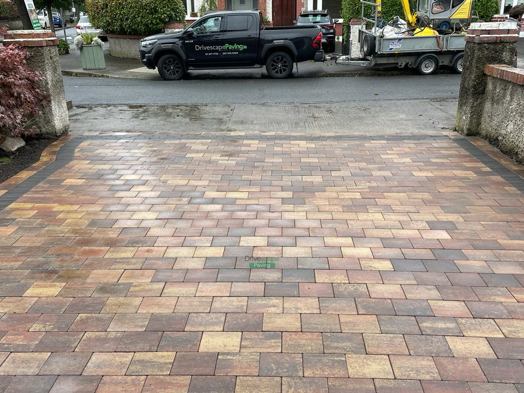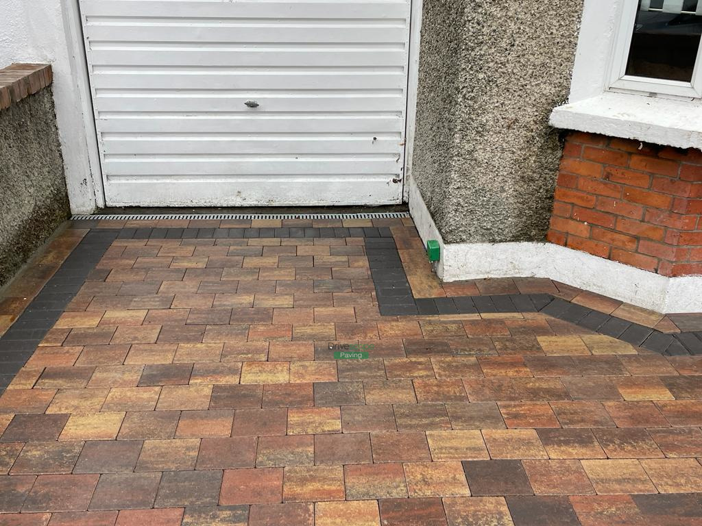 This new driveway has a wider entrance for easier parking and a top surface of ‘rustic’ Corrib blocks with charcoal borders.