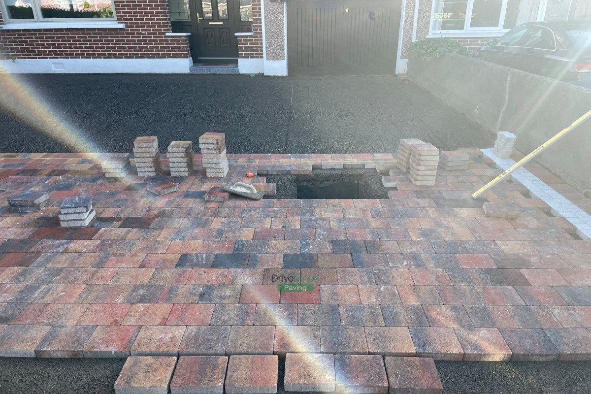 Driveway with Tobermore Block Paving, Granite Borderlines and New Pillar in Clontarf, Dublin