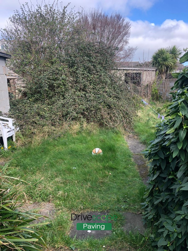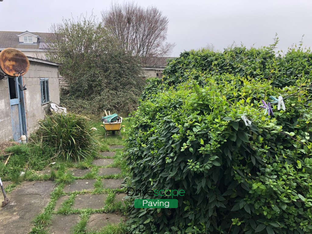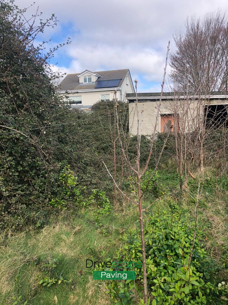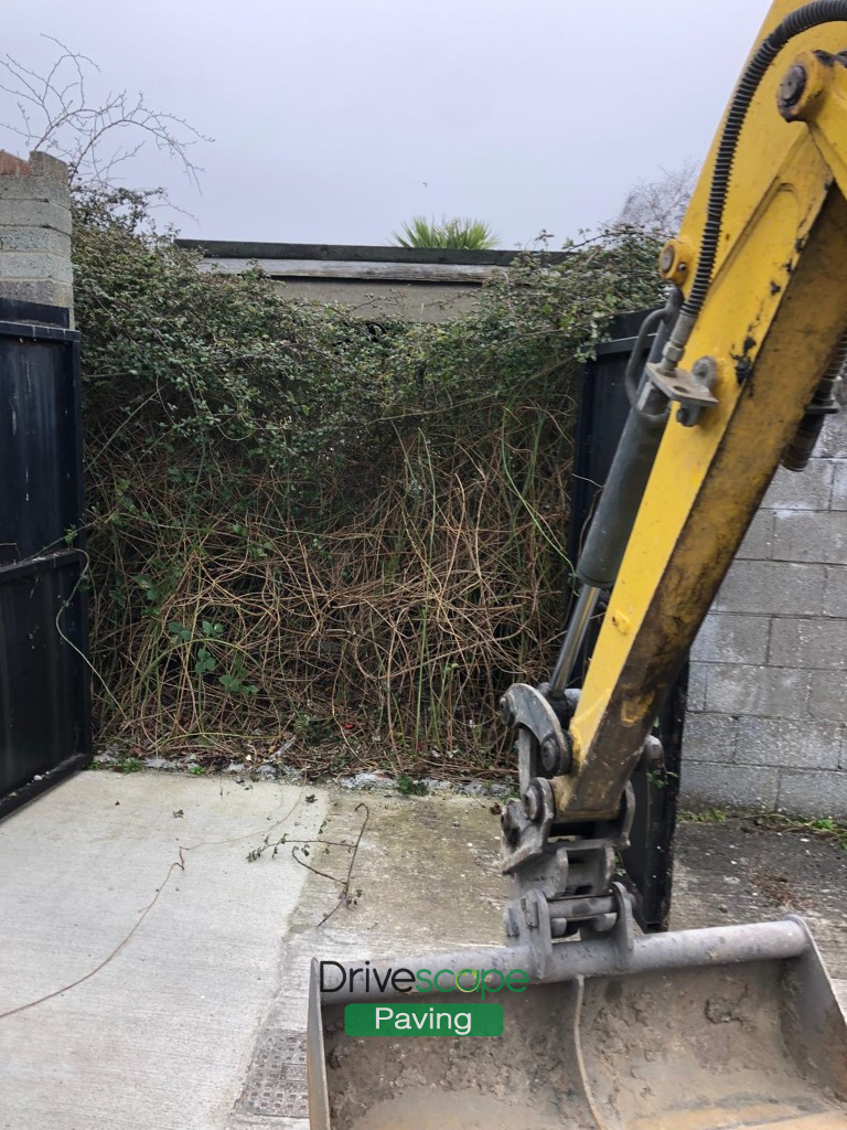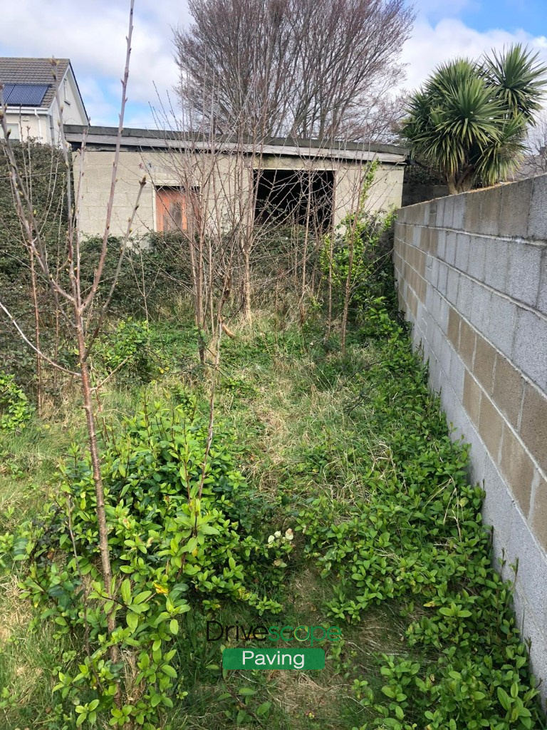 We started by excavating the whole area, including all the overgrown bushes, trees and the old timber shed. Then we put down new hardcore 804 foundation with a weed control membrane.