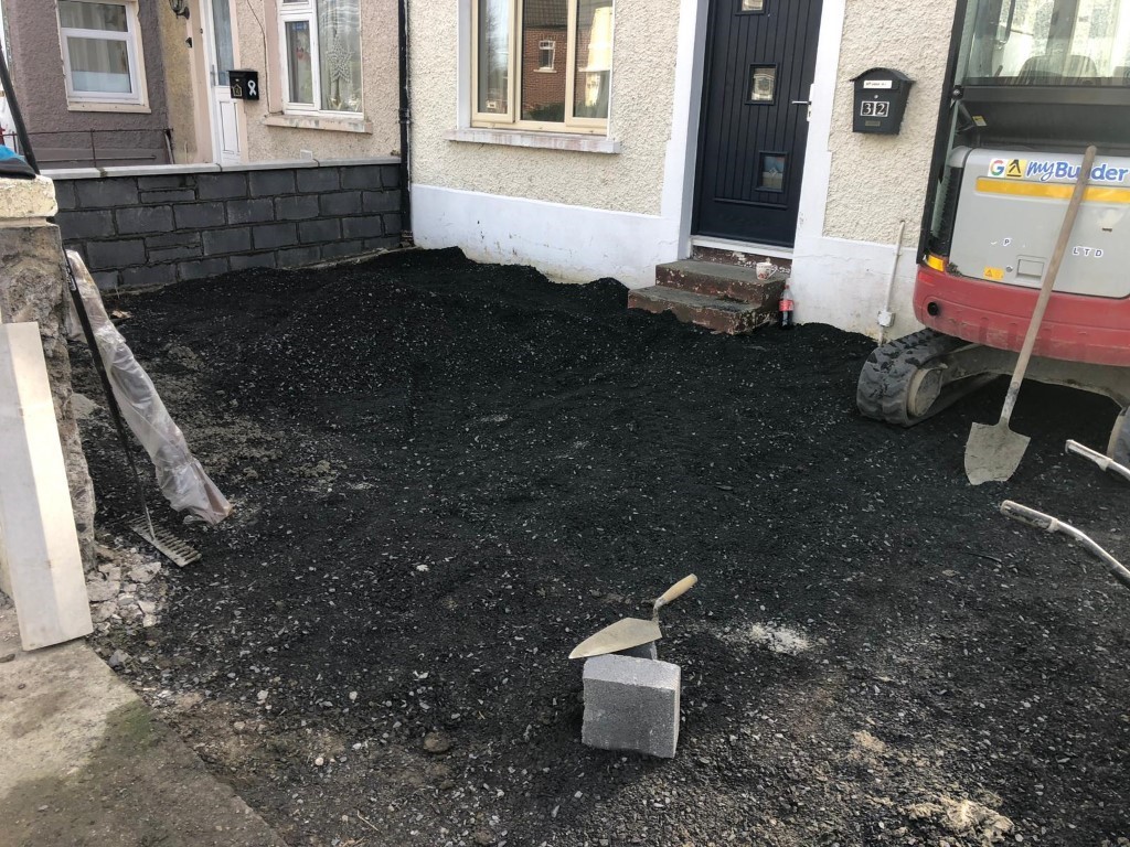 We started by completely clearing out the driveway area of the old rubble and lawn. Then we built new retaining walls topped with saddle-back capping.