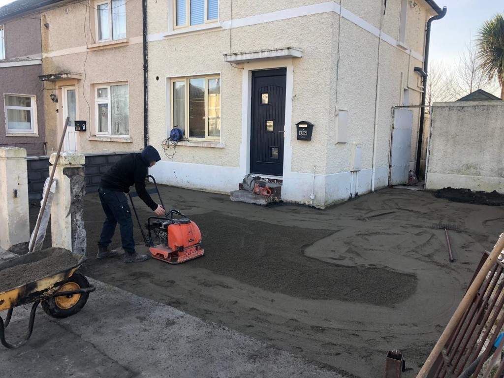 Our next step was to lay protective membrane sheeting together with an 804 stone base, compacted with a machine roller.