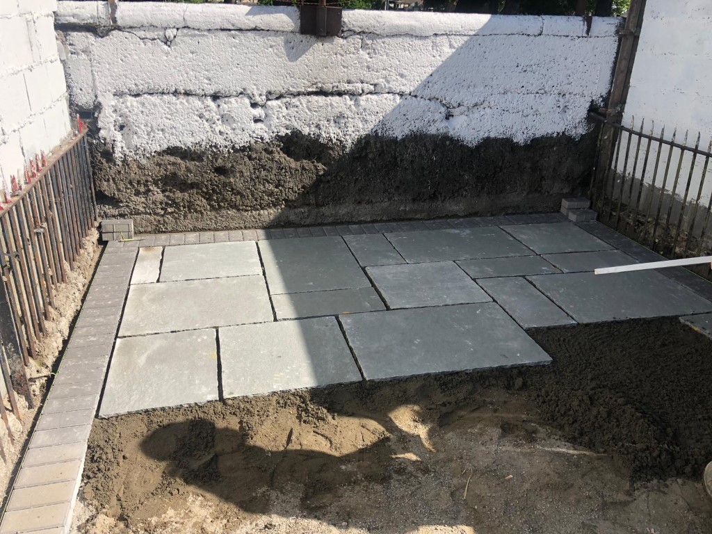 First we took out all of the original patio. We laid down a new 804 foundation as well as a membrane sheeting underneath.