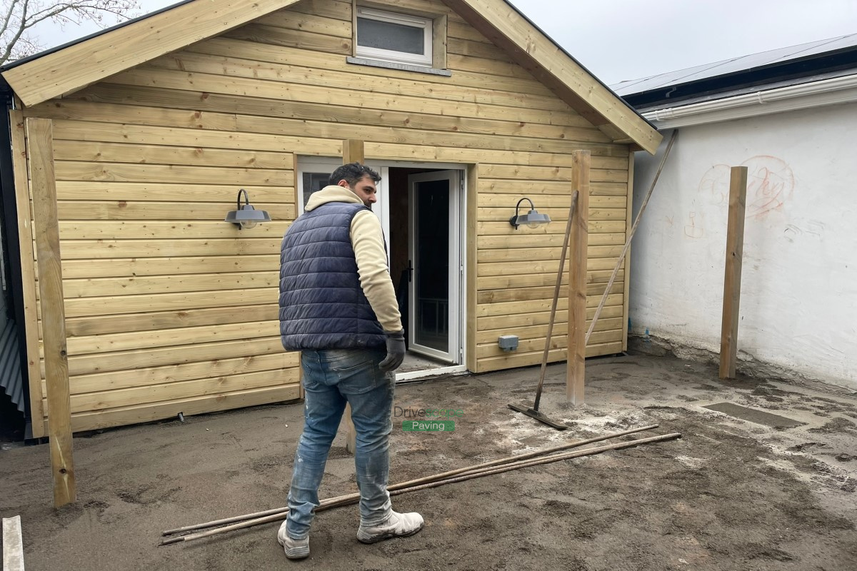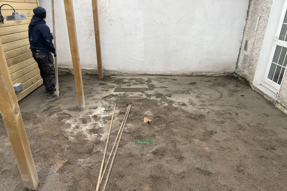 Newgrange Granite Slabbed Patio with Treated Posts in Celbridge, Co. Kildare