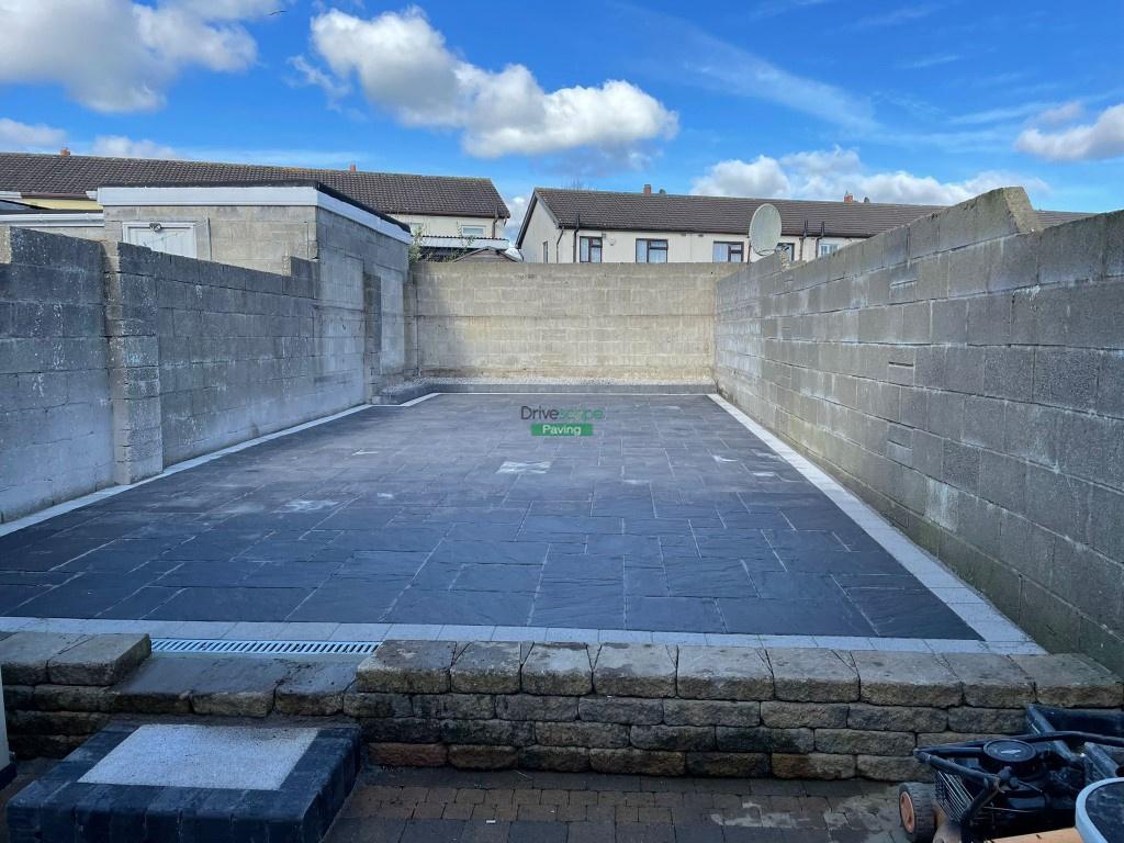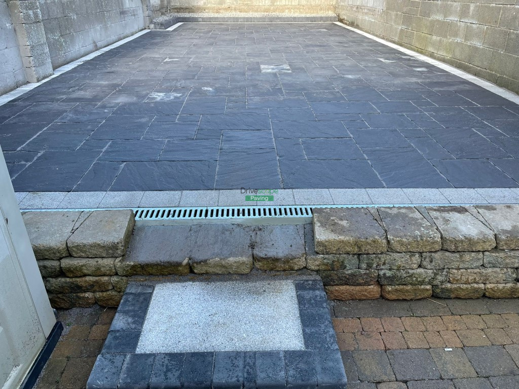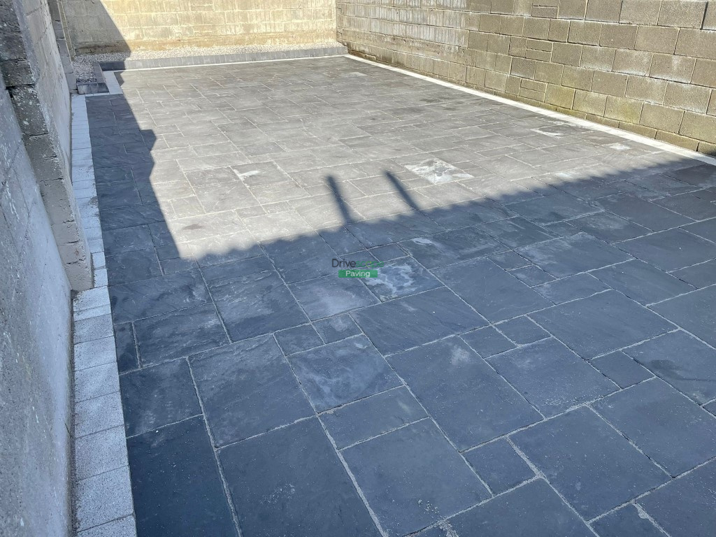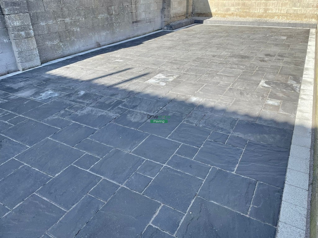 Patio with Charcoal Belvedere Slabs and Silver Corrib Border in Clonsilla, Dublin