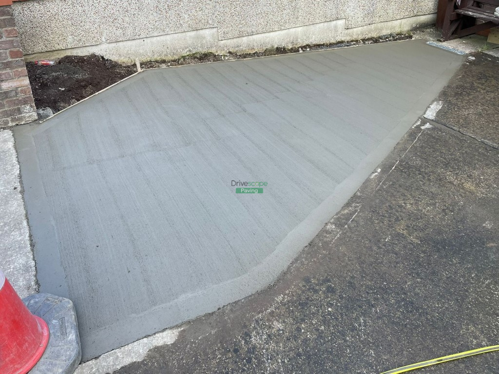 Here are some before and after photos of a patio and a driveway extension installation that we completed in Dublin. We installed the patio with classic charcoal flags and a slane natural border. The extension has been installed with a brushed concrete finish and will serve perfectly for extra parking space.
