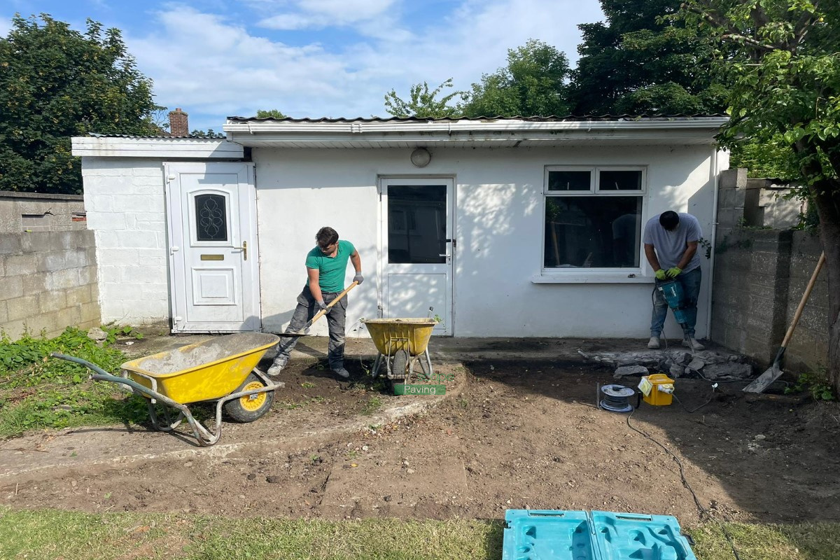 Drivescape Paving installed a new patio in Killester Avenue, Dublin, featuring 600 by 400 mm Newgrange silver granite slabs and charcoal kerbing around the flowerbeds.