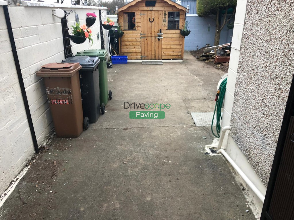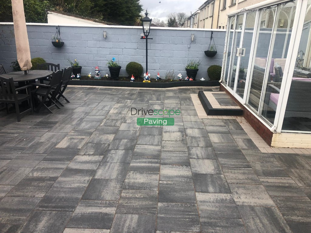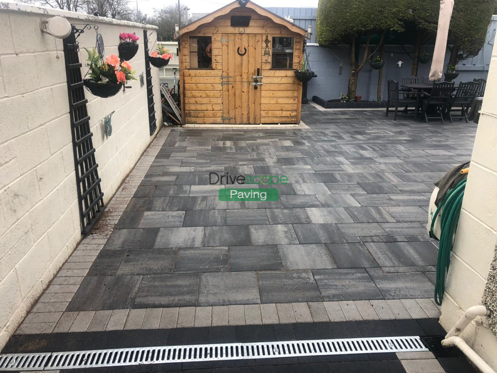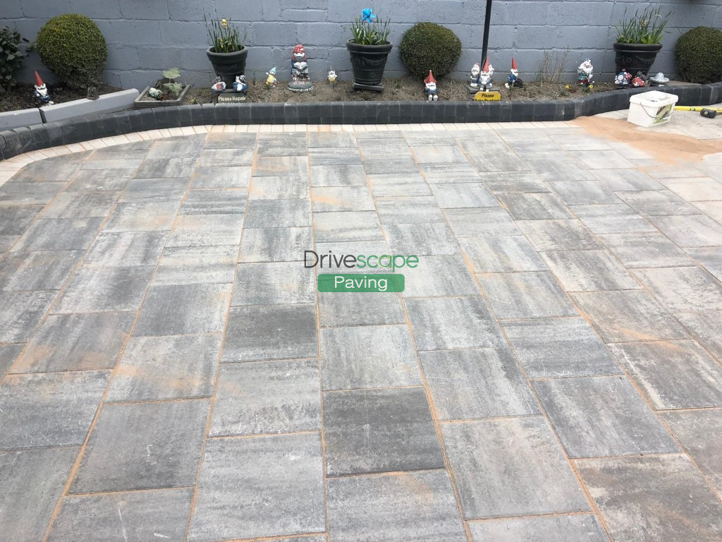Finally we laid the patio with Silver Grey slabs with a Natural borderline and the driveway with Charcoal main paving with the same Natural borderline as the patio.