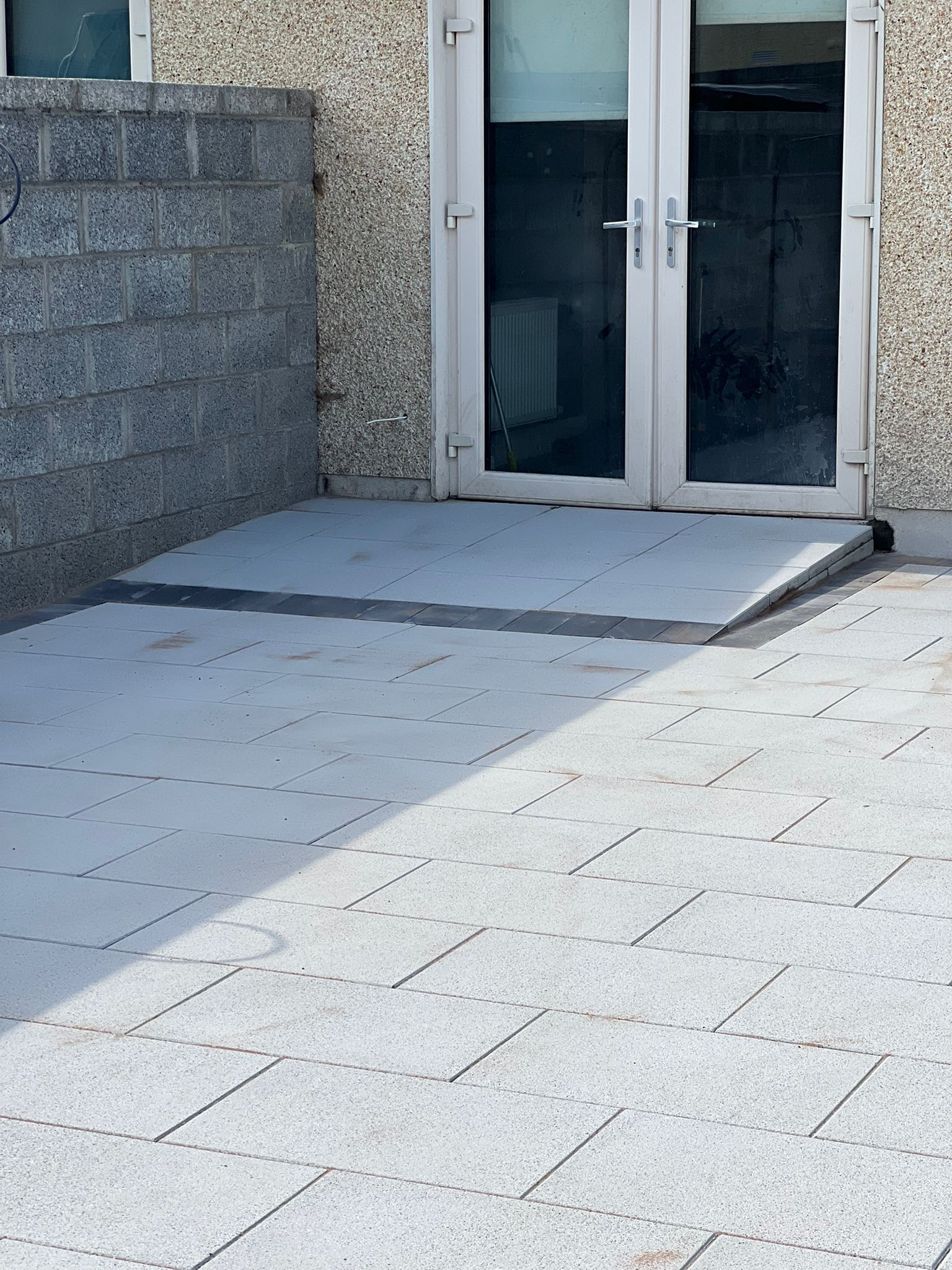 We’ve just installed a premium porcelain patio in Hansfield Wood, Dublin 15, using large 600x900mm tiles for a sleek, modern look. The project also included recessed covers for a seamless finish and a matching walkway leading to the shed—combining style, durability, and practicality.