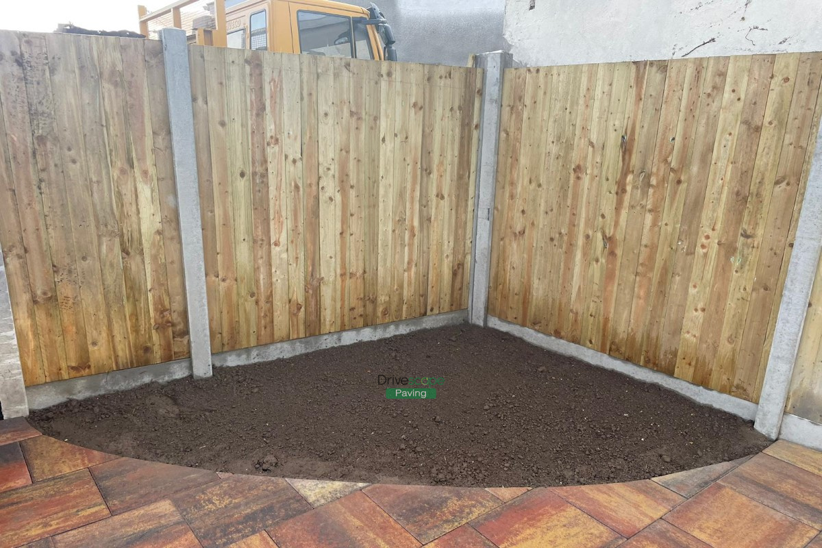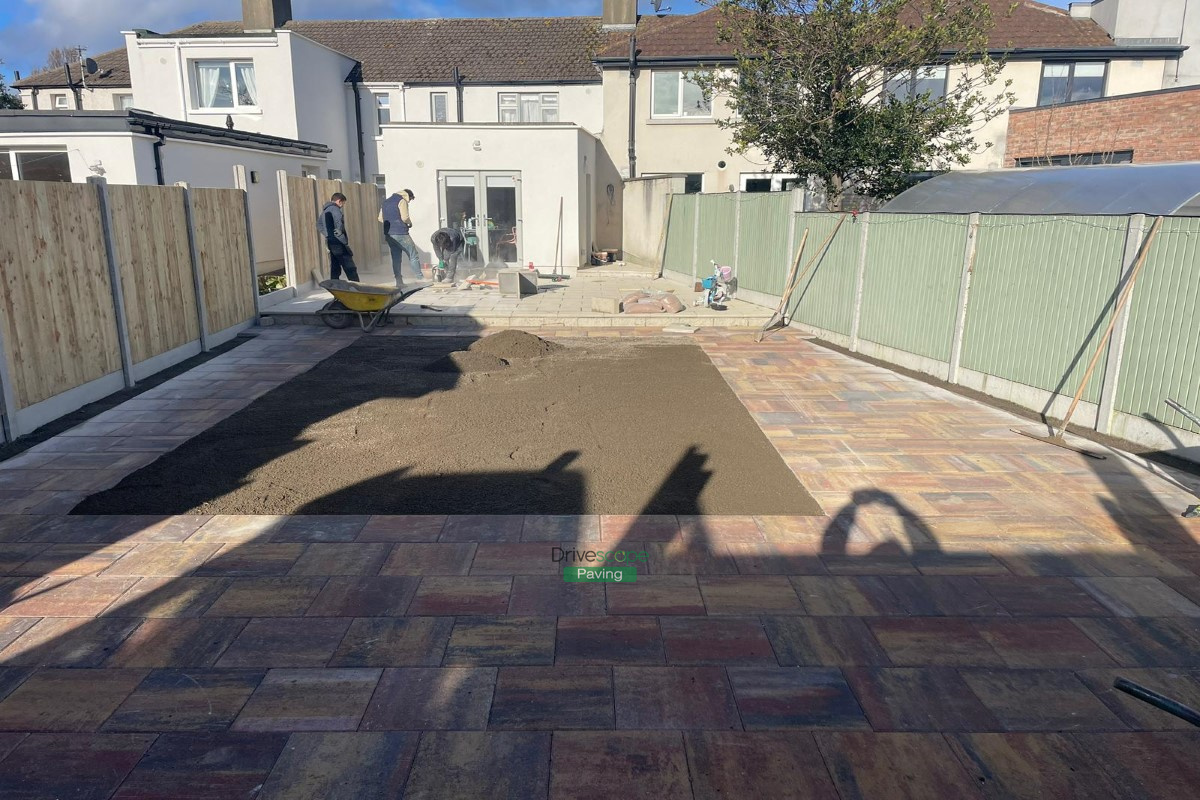 Raised Patio with Buff Granite and Classic Rustic Slabs, New Fencing and Artificial Grass in Clontarf, Dublin