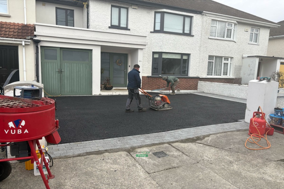 Resin-Bound Driveway with Silver Granite Cobblestones and Granite Slabs in Terenure, Dublin
