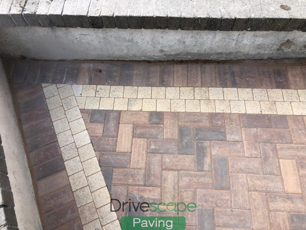 New block paving driveway in Artane, Dublin, completed by Drivescape Paving. We used Slane Rustic paving blocks with Yellow granite borderline.
