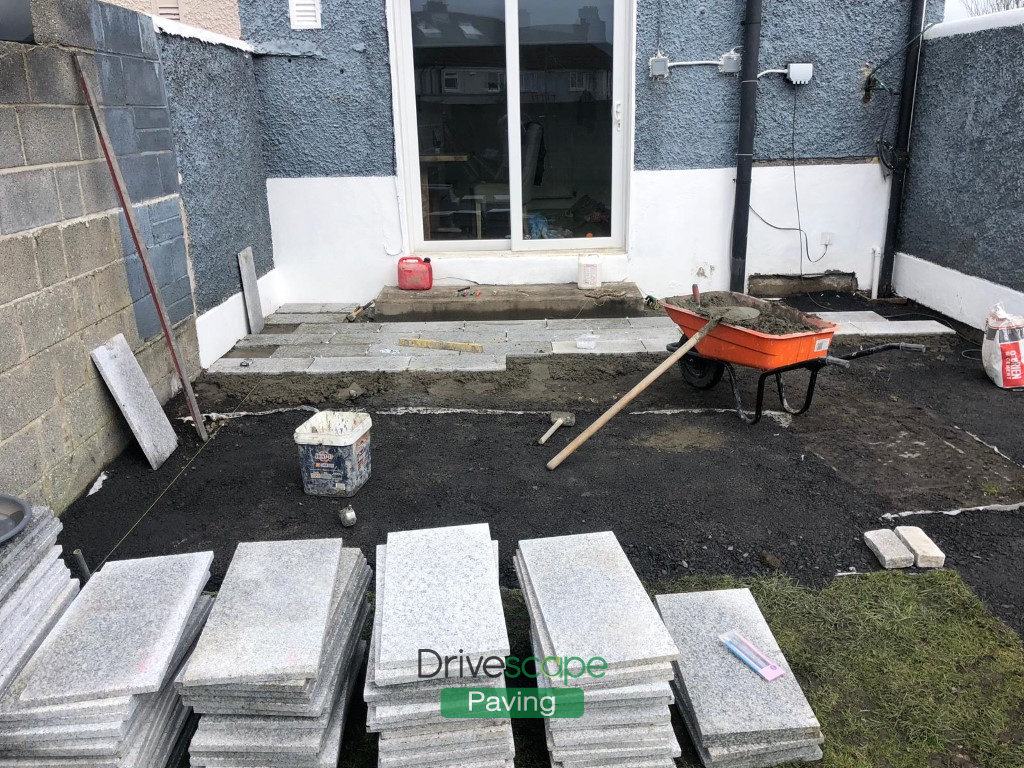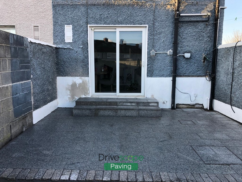 We completed this patio project in Whitehall, Dublin, using 600 by 300 Silver Granite slabs.