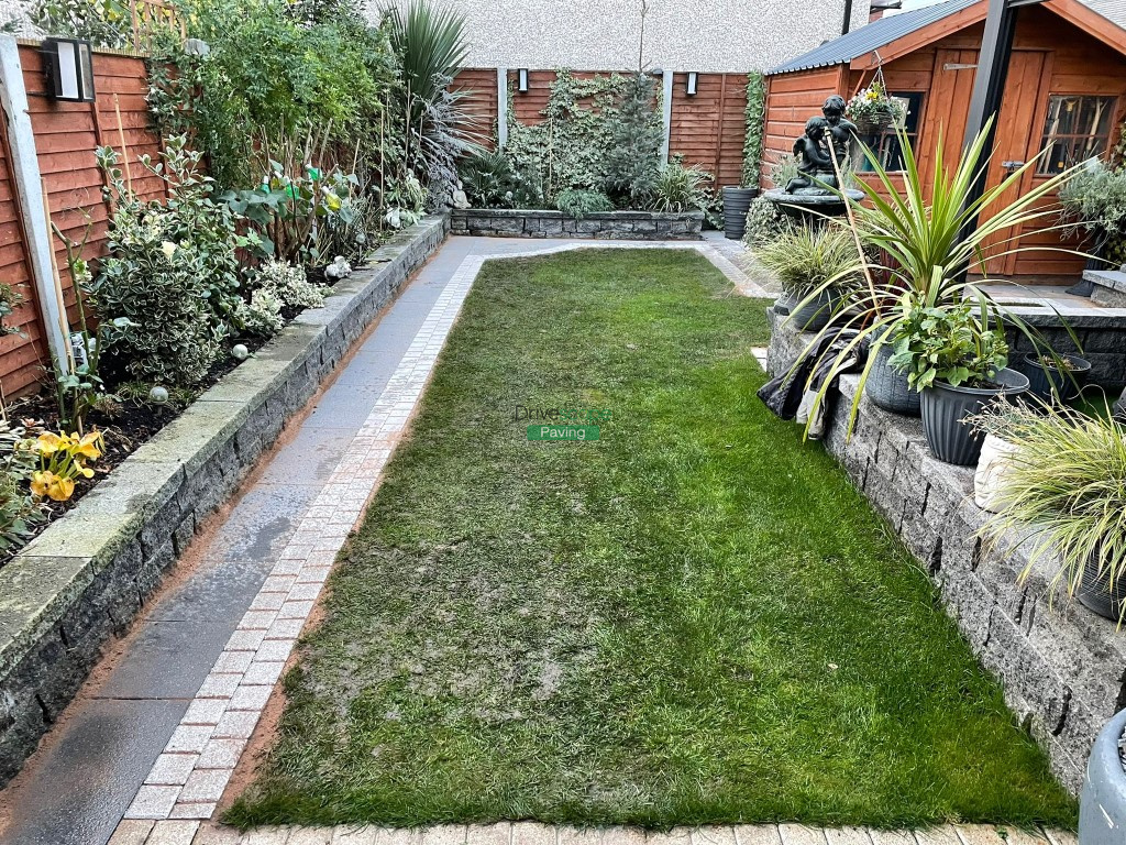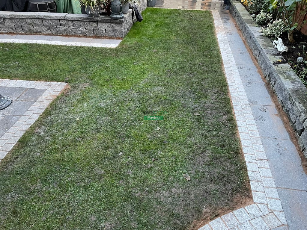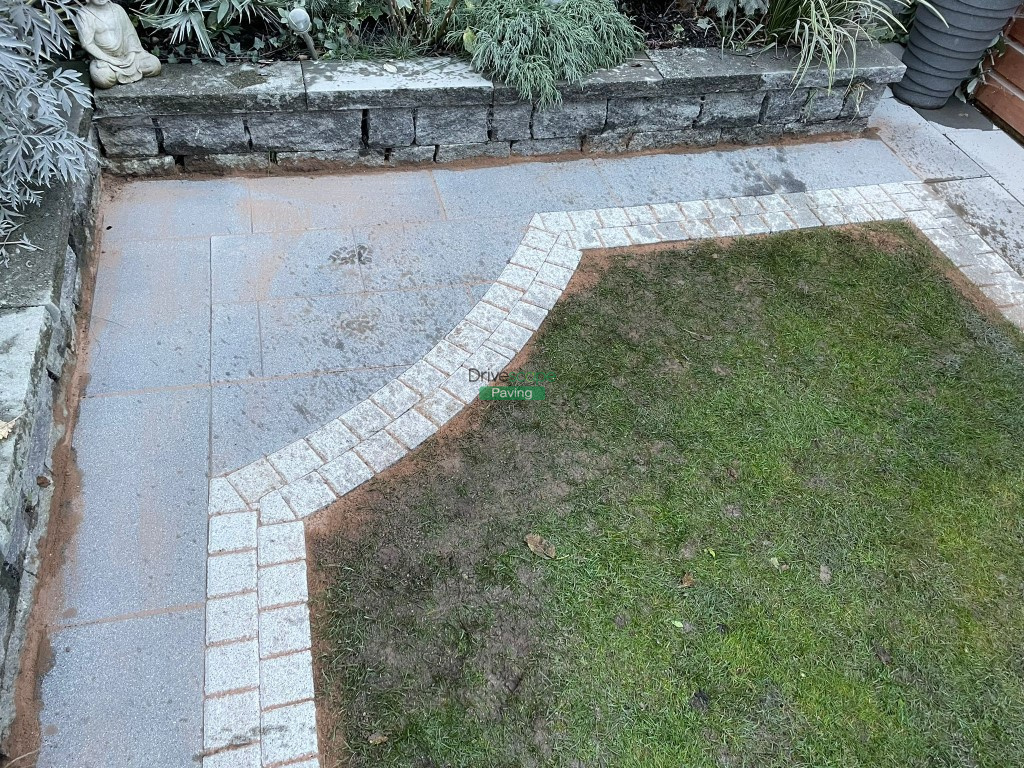 We have installed new pathways onto this previously completed patio with black granite Newgrange slabs and silver granite borders.
