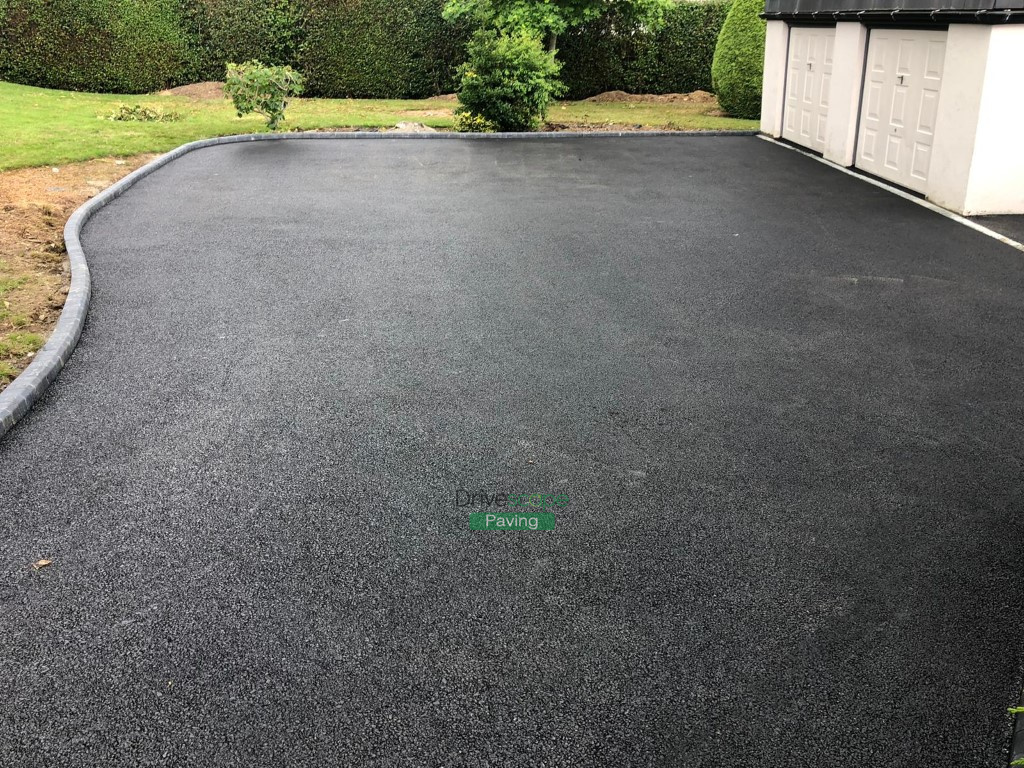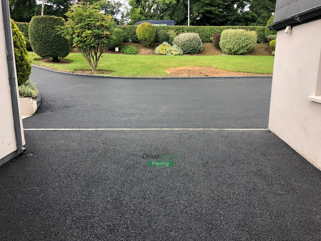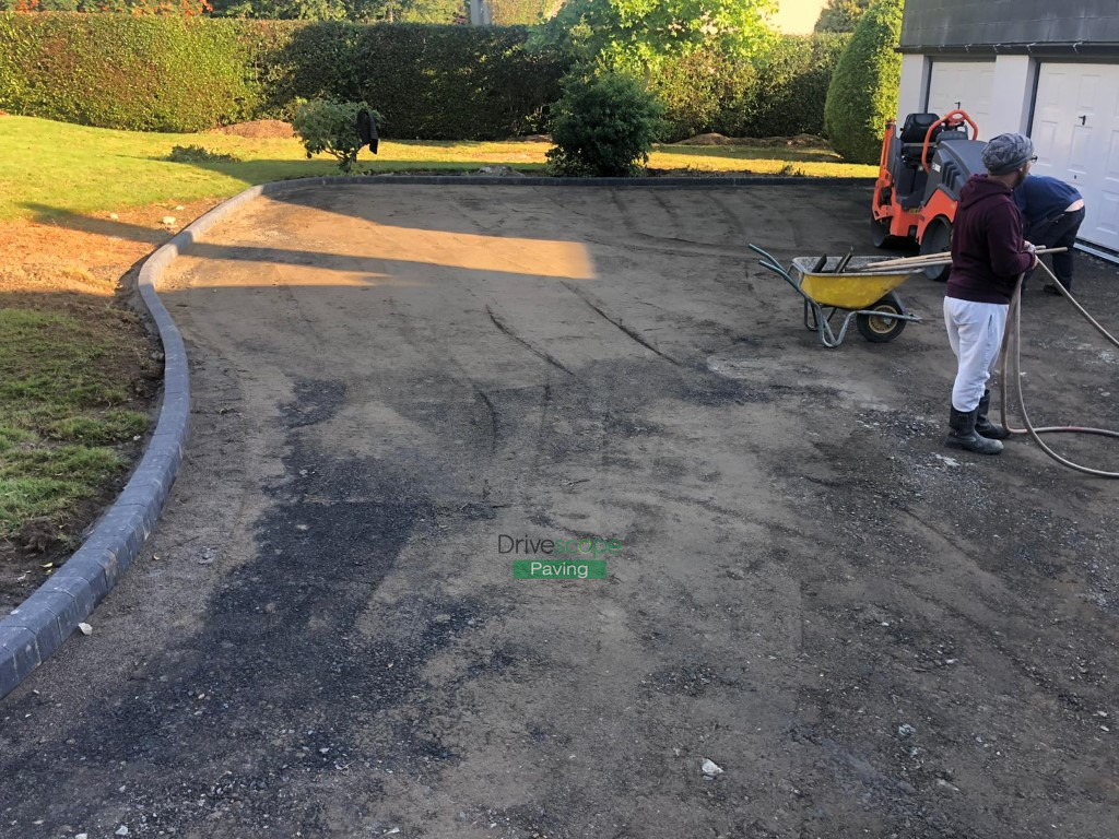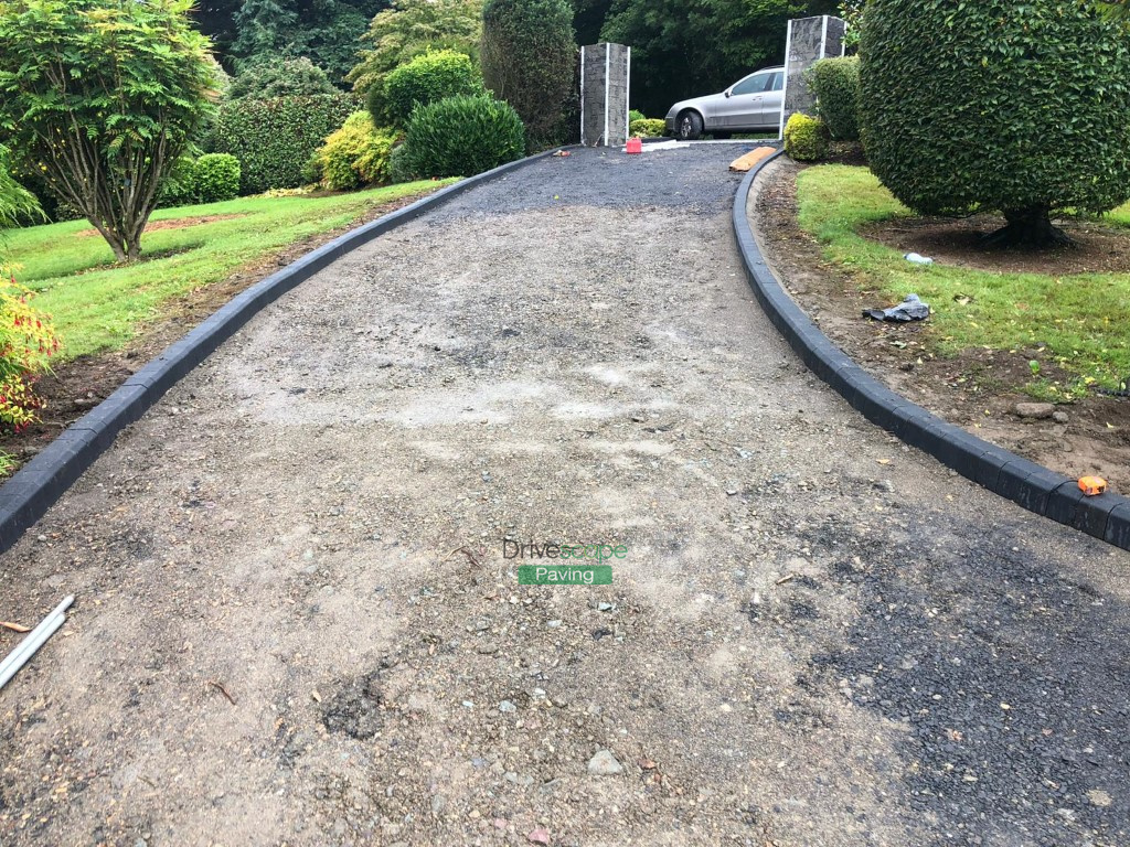 New driveway has been completed by Drivescape Paving in Shankill, Co. Dublin, featuring tarmac top driveway finish with kerbstones and granite apron, as well as new pillars with granite caps.